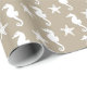 Papier Cadeau Hippocampe et poisson-étoiles - blanc sur taupe