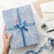 Papier cadeau de Noël avec calligraphie moderne joyeux script de Noël en bleu et blanc d'hiver. Customisez la couleur arrière - plan avec votre choix.