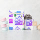 Hiver sans transparence Joyeux paysage de Noël violet rose maisons vertes arbres blancs arrière - plan