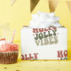 Holly Jolly Vibes Retro 1960s Papier cadeau de Noël... Enveloppement cadeau de Noël style hippie des années 1960. Notre papier d'emballage à motifs affiche le texte graphique "Holly Jolly Vibes" dans une police traditionnelle des années 1960 et dans les couleurs rétro 60 et les années 70... terre cuite, vert bois, et sauge clair.