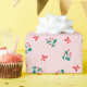 Elegant pink holiday wrapping paper with holly and mistletoe accents. Perfect for classy holiday gifts and winter packaging,