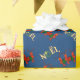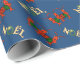 Vos cadeaux sont sûrs d'écarter une certaine acclamation de vacances cette saison avec ce papier d'emballage comportant un trio mignon des écrevisses caroling (homards) et du mot "Noel" avec une guirlande pour la lettre "O" sur un arrière - plan bleu-foncé.