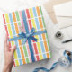Geometric linéaire, rectangle, striped pattern of rainbow pastel hues of blue, orange, vert, rose, purple, rouge et jaune.