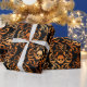Papier Cadeau Huile noire et cuivre Halloween crâne Damask