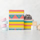 Inspiration est un motif funky en rayures colorées jaunes, roses, bleues et blanches et triangles bleus et jaunes.