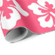 Le papier d'emballage cadeau à thème de l'île tropicale présente un motif de fleurs d'hibiscus blanc sur un arrière - plan rose chaud. Parfait pour la plage, Hawaii et le littoral thème Noël, mariage, anniversaires, etc. Oeuvre originale KL Stock.