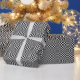 Ce papier d'emballage comporte une conception noire et blanche de damier, qui crée une illusion optique.