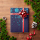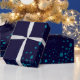 Enveloppez votre cadeau admirablement avec ce papier d'emballage d'illustration moderne unique comportant autour des étoiles sur un fond bleu-foncé.