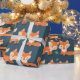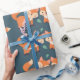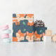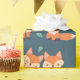 Envelopper le papier avec une illustration graphique de 2 renards oranges à l'air mignon et heureux. Arrière - plan vert foncé.