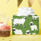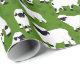 Ce papier d'emballage est parfait pour quiconque élève ou aime les moutons. Il présente un motif d'illustrations de mouton noir et blanc du Valais, contre un arrière - plan vert pâle.