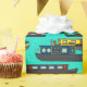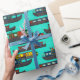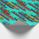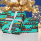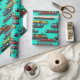 Emballage cadeau bleu eau imprimé à la main avec détails dessinés à la main bateaux de passage, bateaux d'affaires et péniches