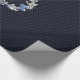 Un design d'applique de chardon écossais chromé argenté sur un fond d'impression de style fibre de carbone bleu marine.