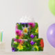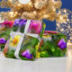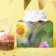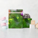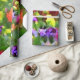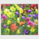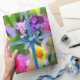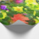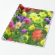 Ce papier d'emballage artistique et floral est couvert de masses des fleurs dans chaque couleur de l'arc-en-ciel. Appréciez le motif de jaune, d'orange, de rose, de rouge, de bleu, pourpre et blanc d'abrégé sur réglé sur un arrière - plan de feuille vert. En regardant ceci, un est rappelé une peinture impressionniste française.