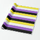 Les personnes non binaires peuvent s'identifier comme ayant au moins deux sexes; sans sexe; le passage d'un sexe à l'autre ou la fluctuation de l'identité de genre; ou être un troisième sexe ou un autre sexe, une catégorie qui comprend ceux qui ne portent pas de nom à leur sexe. Chaque couleur de bande représente différents types d'identités non binaires: Jaune pour les personnes qui s'identifient en dehors du binaire de genre, blanc pour les personnes non binaires avec des sexes multiples, violet pour celles avec un mélange de sexe masculin et féminin, et noir pour les personnes de sexe masculin.