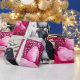 PAPIER CADEAU INSÉPARABLES D'HIVER ET CHIENS BLANCS EN FUCHSIE R