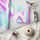 Ce design holographique en marbre irisé à rotation liquide présente un mélange fascinant de couleurs toniques vives et pastel. L'image est trippée et déformée, avec un effet de diffraction de lumière captivant, rappelant le style psychédélique des ondes de vapeur des années 80-90.
