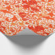 Papier d'emballage dans une impression florale vintage de William Morris des lis et des iris stylisés, numériquement augmentée et colorée, aux nuances de la lumière à la mandarine profonde sur un arrière - plan blanc