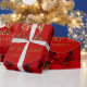 Joyeux Noël en langue italienne, Elégant Faux Gold Foil Script Golden Text : Buon Natale, on Red, Poinsettia Style, Arrière - plan, Red Holiday Season Glossy ou Matte Gift Wrapping Paper, vous pouvez ajouter nom ou texte