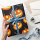 Halloween souriant citrouilles et chauves-souris volantes, emballage cadeau de fête coloré.