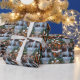 This festive design captures the joyful spirit of the holiday season, featuring an adorable dogs.Nestled in a winter wonderland, complete with a decorated Christmas tree, and beautifully wrapped presents. Snowflakes gently fall, adding a magical touch to the scene, while the vibrant colors of the holiday decorations create a warm and cheerful atmosphere.