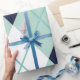 Papier Cadeau Jacquard moderne motif turquoise marine bleu prepp