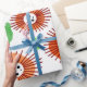 Ce papier d'emballage a un design scandinave de fleurs minimalistes dans les tons rétro d'orange et de marron. Lumineux, coloré et festif.