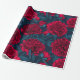 Papier Cadeau Jardin de pivoine rouge sur bleu foncé