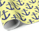 Papier Cadeau Jaune clair, bleu marine Ancres Motif