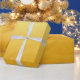 Le papier d'enveloppement d'or jaune est entièrement personnalisable et peut être utilisé pour n'importe quelle occasion. Conçu par Norman Reutter.
