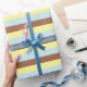 Papier Cadeau Jaune pâle, bleu pastel et rayures Brown