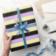 Papier Cadeau Jaune pâle, noir et pourpre doux rayures