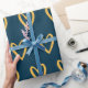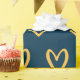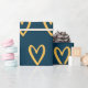 Papier Cadeau Jaune sur bleu prussien Coeurs dessinés à la main