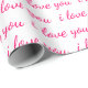 Ce papier d'emballage présente le texte "je t'aime" en typographie cursive. Ce texte peut être personnalisé avec votre propre message ou nom.