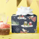 Envelopper vos cadeaux avec style pour vos amis et votre famille cette saison de vacances. Illustration de Noël joyeuse avec un ange de Noël de paix sur terre avec une colombe blanche. Elle vole au-dessus d'un village de montagne d'hiver avec des maisons colorées, des arbres de Noël et des animaux qui courent dans la neige, des flocons de neige tourbillonnent. À l'arrière, vous pouvez écrire un message personnel et votre nom personnalisé. Oeuvre originale peinte à la main par Caroline Bonne Müller