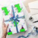Dino envelopper le rouleau d'anniversaire de papier pour garçon. Joli dinosaure d'anniversaire avec confetti, casquette et souffleur. Pour les soirées à thème dinosaure. Idée cadeau pour les enfants.