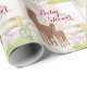 Ce papier d'emballage Baby shower à thème Cheval présente un Joli Mare et Foal Brown avec un bel arrière - plan aquarelle. Elles sont dressées au milieu de jolies fleurs, d'une clôture en bois et d'un bel arbre.