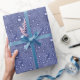 Ce papier d'emballage pour votre cadeau est un bleu et blanc assez profond avec un motif abstrait de gouttelettes d'eau.