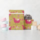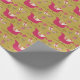 Ce joli emballage cadeau de Noël présente un adorable motif de vacances avec un arrière - plan d'or et un traîneau rouge Père Noël avec des cadeaux emballés avec de jolis rubans.