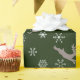 Célébrez les fêtes pendant que vous enveloppez les cadeaux avec ce joli emballage cadeau de Noël vert hiver. Ce papier d'emballage de vacances présente un arrière - plan vert foncé et festif avec un motif qui a des rennes volants et différentes sortes de flocons de neige.