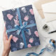 Ce papier d'emballage présente un casquette beanie d'hiver mignon, motif foulard aux couleurs rose et bleu.