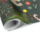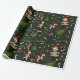 Papier Cadeau Joli Illustré Rétro Noël Vert foncé