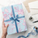 Papier Cadeau Joli motif floral féminin rose et bleu