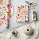 Motif de Noël sans couture avec Père Noël, bonhomme de neige, manchot, pingouin, pains d'épices, boîtes cadeaux, boules de Noël et feuilles sur un arrière - plan beige. Le style est caricatural et coloré.