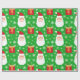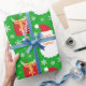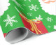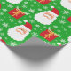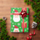 Papier Cadeau Joli Père Noël de Noël vert avec cadeaux et flocon
