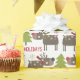 Beau et moderne papier d'emballage avec de mignons rennes de dessins animés avec des arbres de Noël et des joyeuses fêtes lettrage rouge sur un arrière - plan blanc