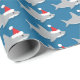 Envelopper le papier avec des requins mignons, souriants, dans des chapeaux de Père Noël. Cute Shark in Santa Hat Papier d'enveloppement de Noël