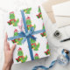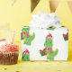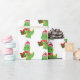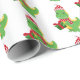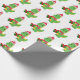 Joli enveloppement de Noël spécialement pour les enfants qui aiment les dinosaures! Caractéristiques motif de vert souriant T-Rex en chapeau santa et écharpe sur arrière - plan blanc.