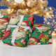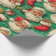 Ce papier d'emballage festif présente un motif répétitif d'images de Noël classiques sur un arrière - plan texturé vert moyen qui ressemble à un mur en brique ou en stuc. Les principaux éléments de la conception sont : Visages du Père Noël : De nombreuses représentations de la tête du Père Noël, chacune avec un visage jouant, une barbe blanche moelleuse, et un chapeau traditionnel rouge du Père Noël avec un bord blanc et un pom-pom. Ses expressions varient légèrement, mais toutes véhiculent chaleur et acclamations. Bas de Noël : Des bas de Noël rouge vif avec des menottes blanches sont entrecoupés dans tout le motif. Certains semblent être pleins, faisant allusion aux cadeaux à l'intérieur. Boîtes cadeaux : Les petites boîtes cadeaux carrés emballées dans du papier doré avec des arcs rouges font également partie du design répétitif. L'agencement de ces éléments est un peu décalé et se chevauchent, créant un motif dense et animé. Les couleurs sont traditionnelles et vibrantes, ce qui en fait l'idéal pour les vacances enveloppant cadeaux. L'esthétique générale est gaie et nostalgique, parfait pour capturer l'esprit de Noël.