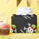 jolly roger elfe crâne drôle Noël Vacances papier enveloppement. Drôle drapeau de pirate Xmas enveloppé cadeau avec la tête squelette et les os en portant un casquette elfe vert. Couleur arrière - plan noir personnalisable.