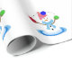 Ce papier d'emballage est orné d'un design hivernal fantaisiste, montrant un adorable bonhomme de neige perché sur un anneau de glace, jouant avec trois boules colorées. Il est habillé d'une toque et d'une écharpe chaudes.